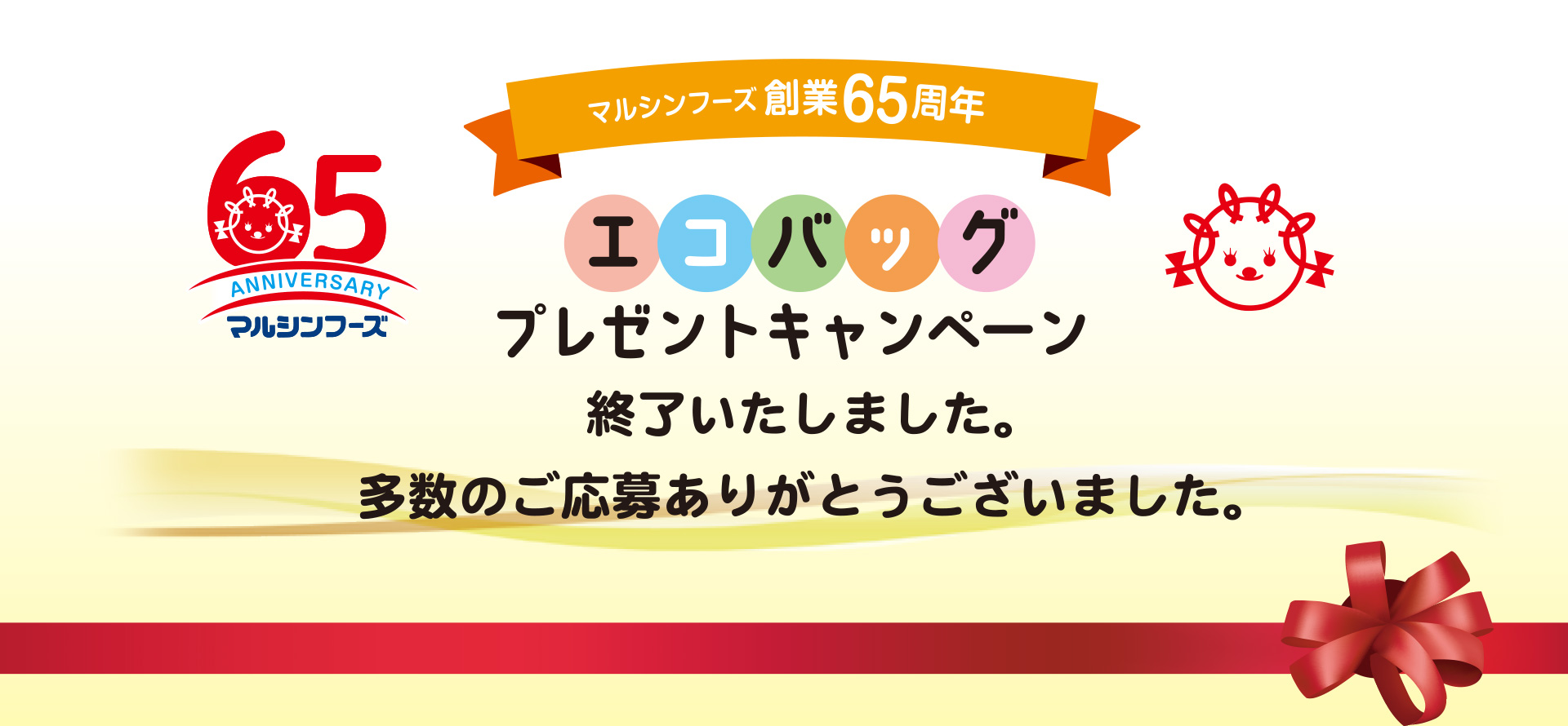 エコバッグプレゼントキャンペーンは終了いたしました。多数のご応募ありがとうございました。