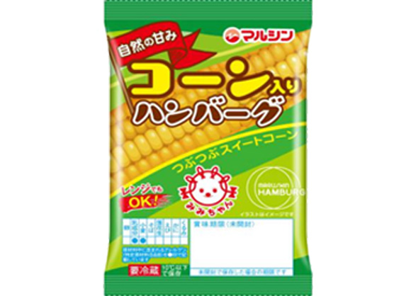 おなじみのマルシンハンバーグに、スイートコーンを粒ごと入れました。